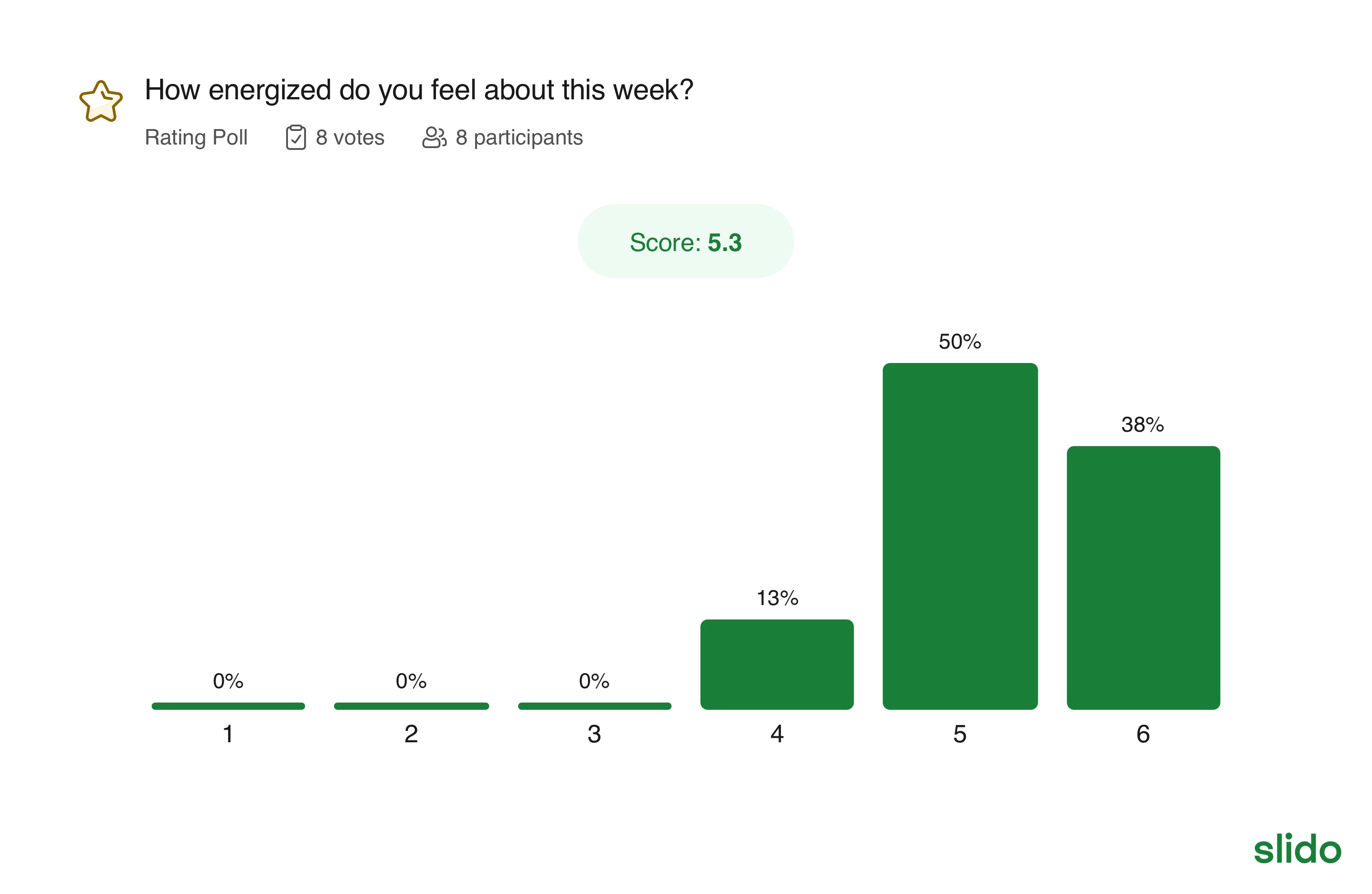 Rating polls help you to quickly “read the room” during any meeting or sync. They can help you identify misalignment within your team, or confirm that everyone is on the same page – allowing you to move forward together.