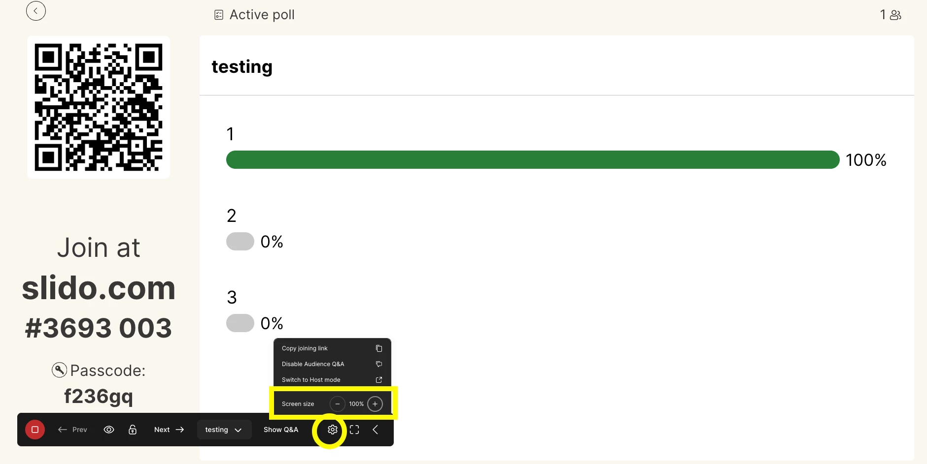 We currently don’t have a feature which allows for Font or Size changes in Slido. My apologies for that. However, I’ll be happy to forward this to our product team as feature request. You can also check for any Slido updates at our Product News page.