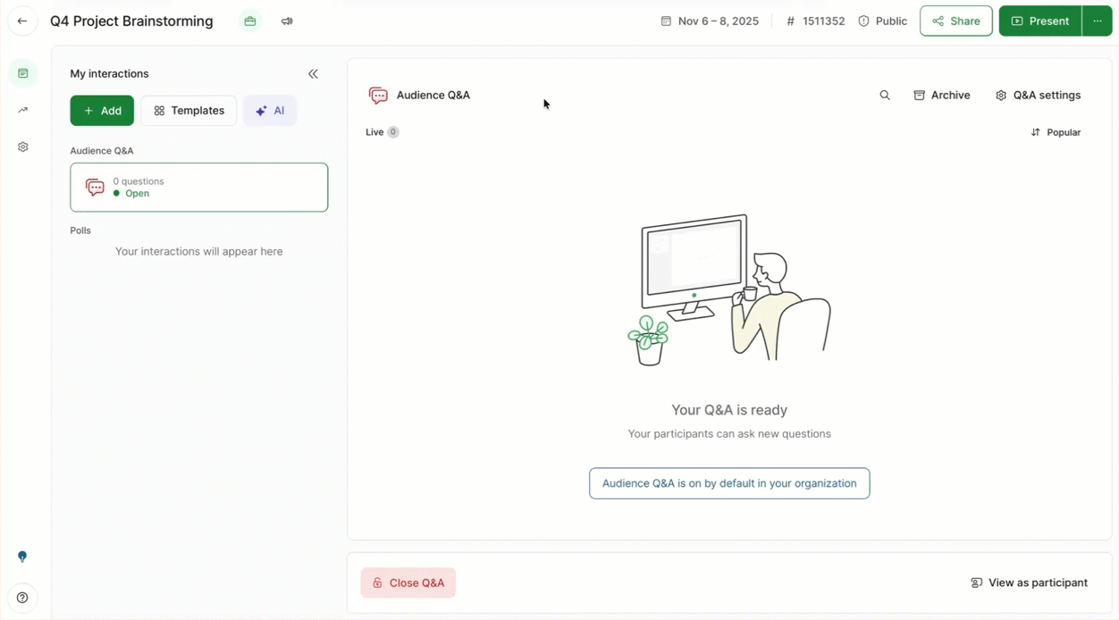 To learn about all of Slido’s AI features and settings, check out the AI section of our Help Center. For more technical details, you can read our AI Transparency Note.
