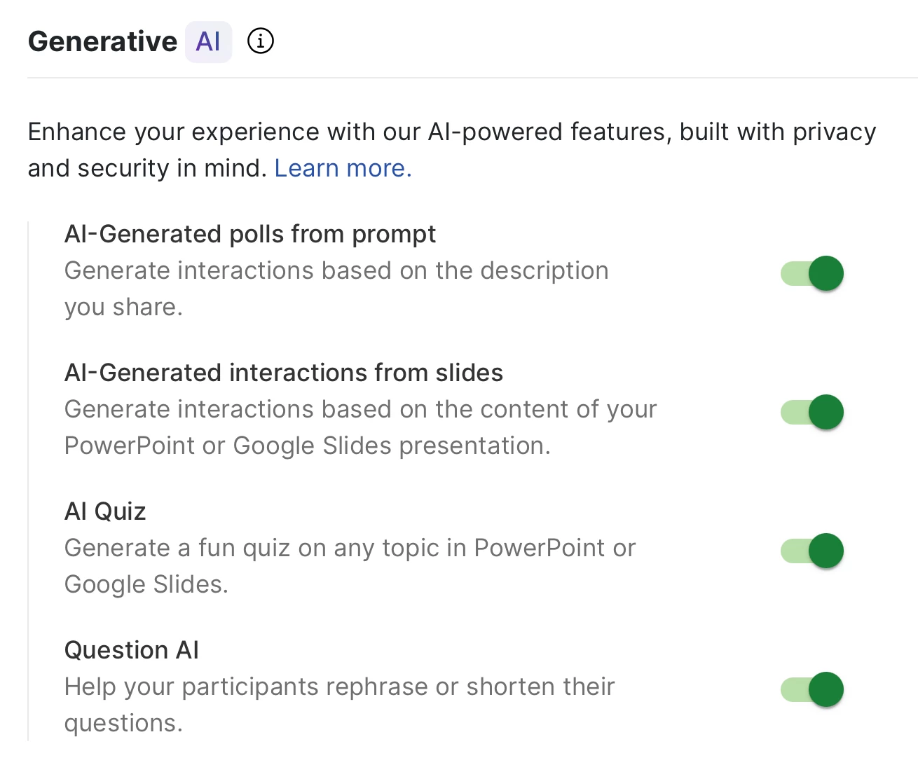 By default, all Slido AI features are enabled for Professional and Engage plans.