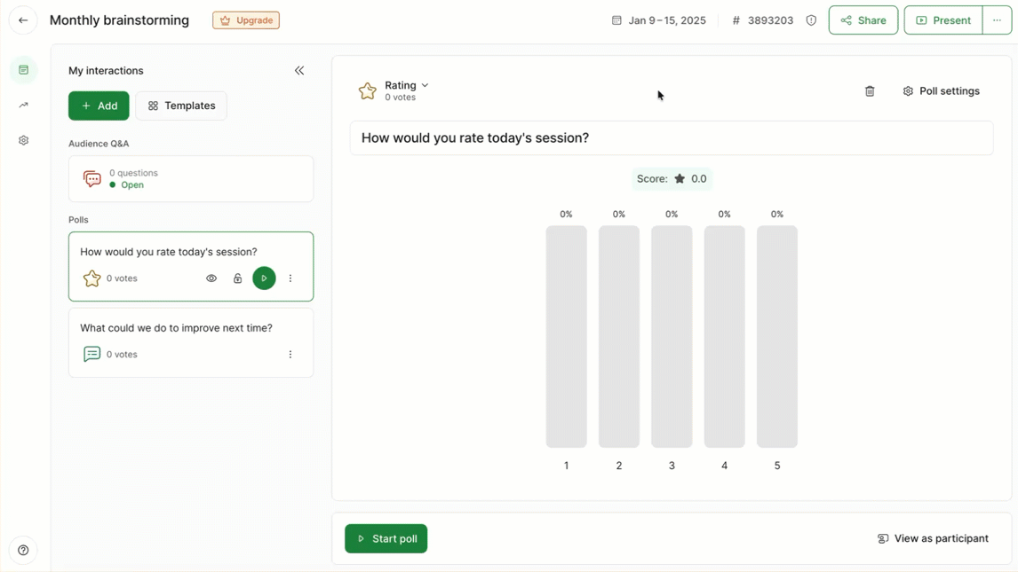 - Share your feedback with us (what you liked about Slido, what didn’t work for you, etc.)